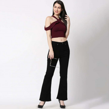 Women Black Bootcut Hig...